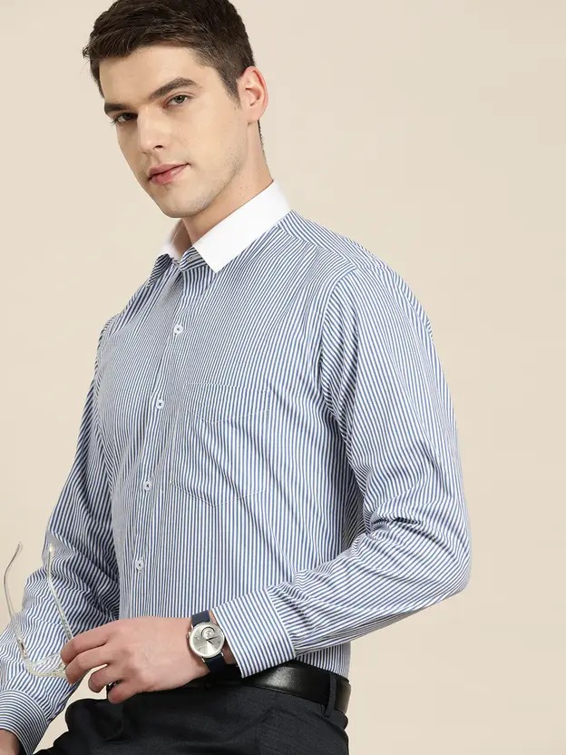 Men Slim Fit Striped Spread Collar Formal Shirt