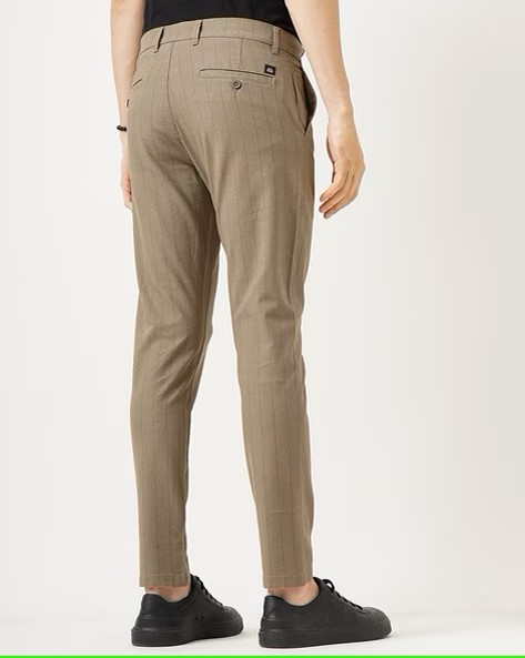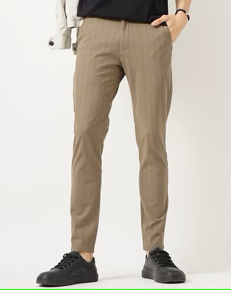 Cotton Linen Stripes Low Rise Chinos