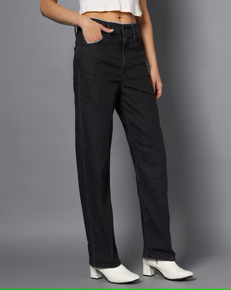 Women's High Rise Ribcage Slim Straight Fit Black Jeans