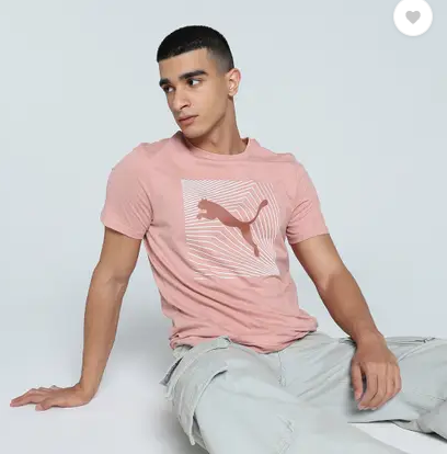 Men Graphic Print Crew Neck Cotton Blend Pink T-Shirt