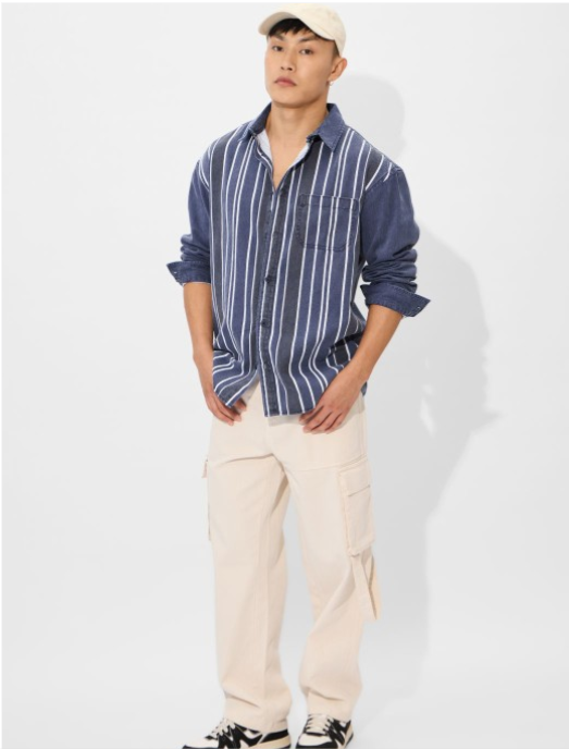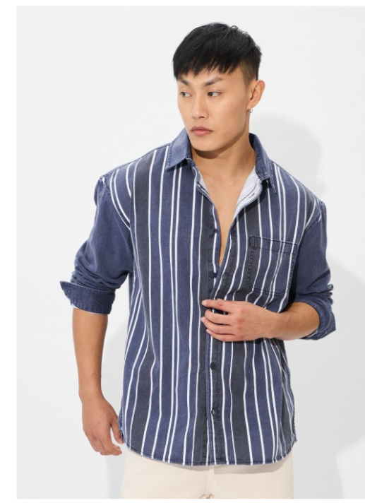 Men Spread Collar Vertical Striped Cotton Relaxed Fit Casual Shir