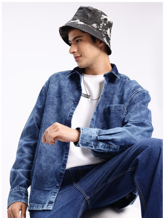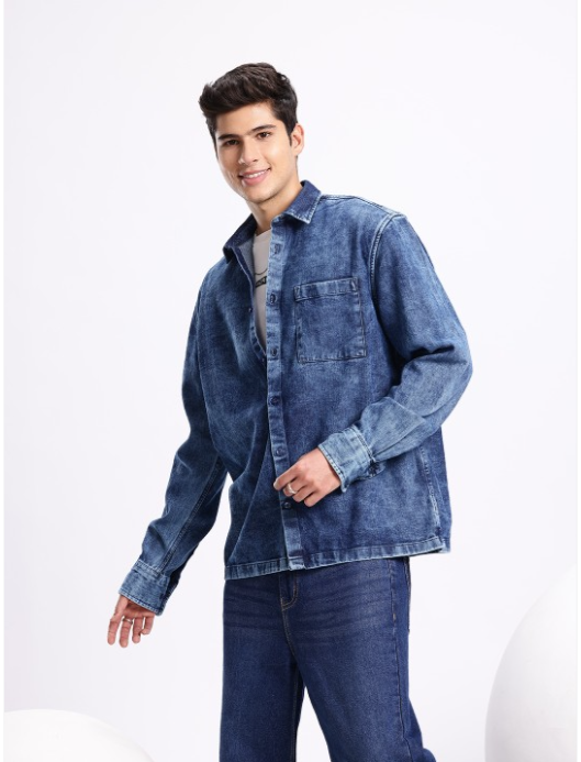 Pure Cotton Drop-Shoulder Sleeves Relaxed Fit Denim Casual Shir