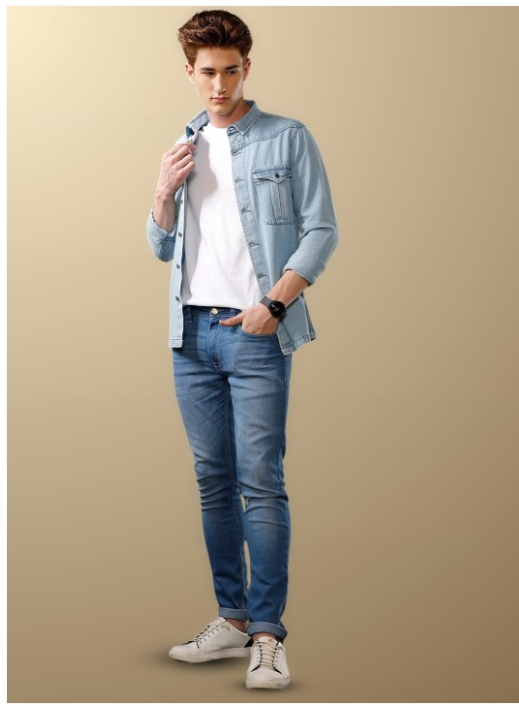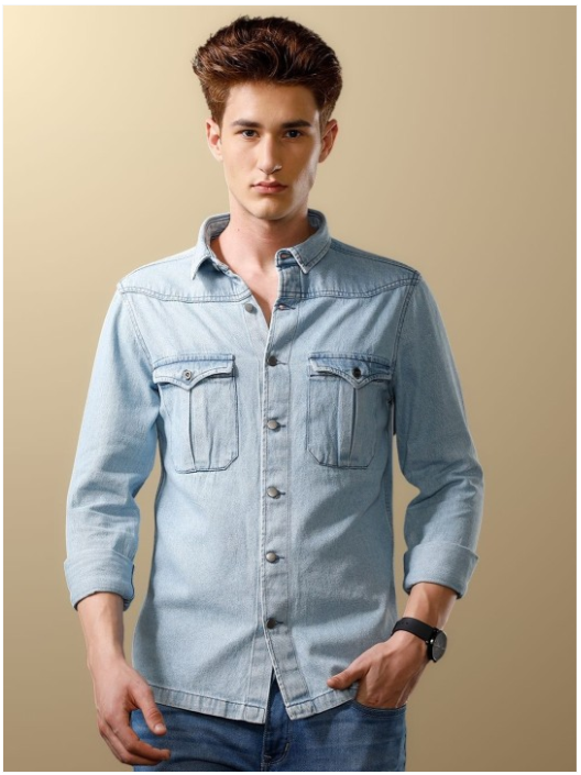 Men India Slim Cutaway Collar Solid Denim Casual Shirt