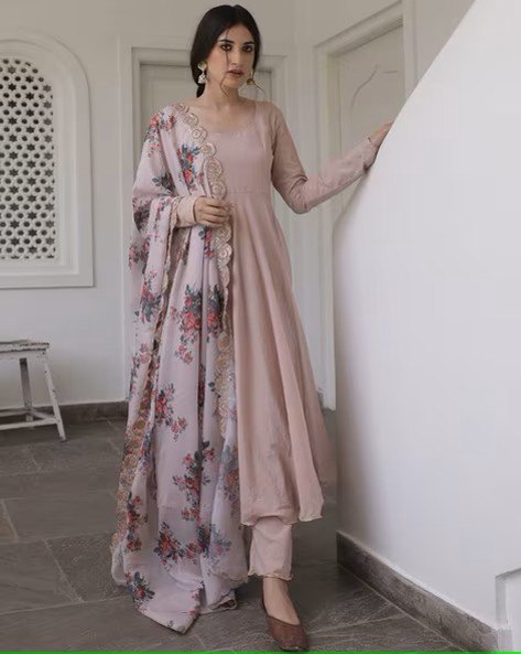 Women Floral Print Anarkali Kurta with Pants & Dupatta