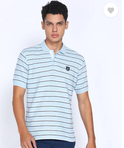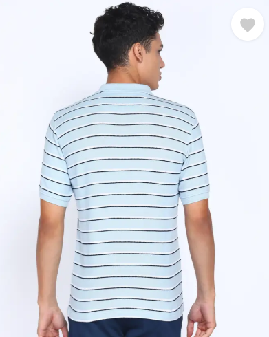 Men Striped Polo Neck Pure Cotton Blue T-Shirt
