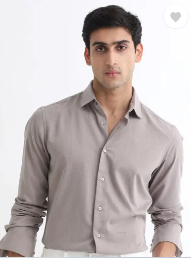 Men Slim Fit Solid Spread Collar Casual Shirt