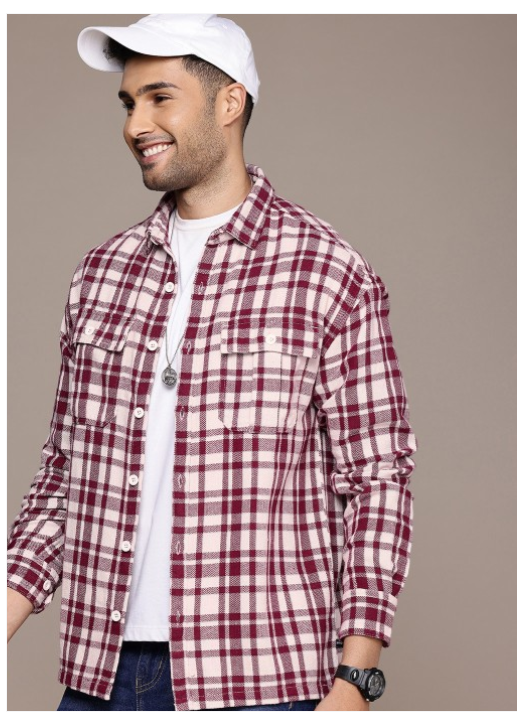 Maroon other checked opaque casual shirt ,has a spread collar, button placket, 2 flap pocket, long drop-shoulder sleeves, straight hem