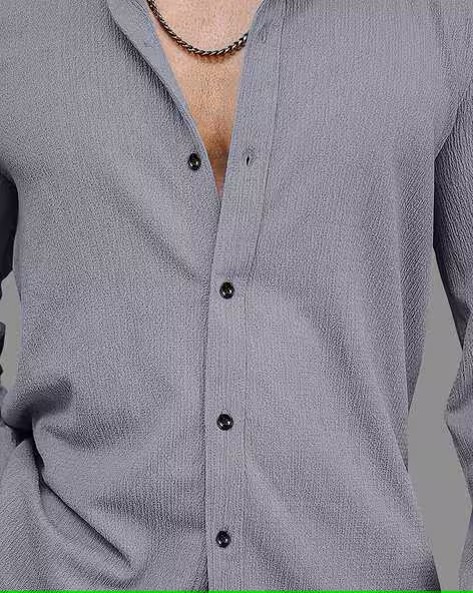Men Regular Fit Shirt with Curved Hem